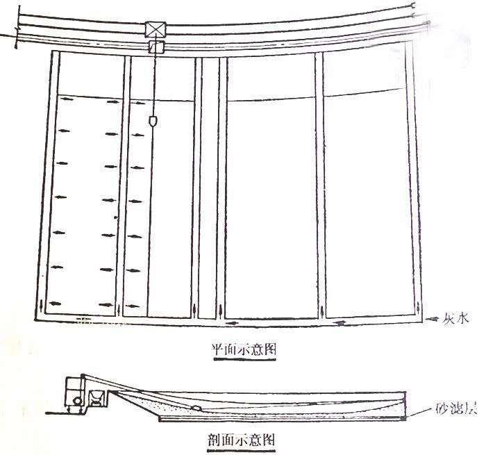 這種沉灰池的構(gòu)造與前述第一種靜態(tài)脫水池相仿,其計(jì)算公式可參照上節(jié)內(nèi)容。