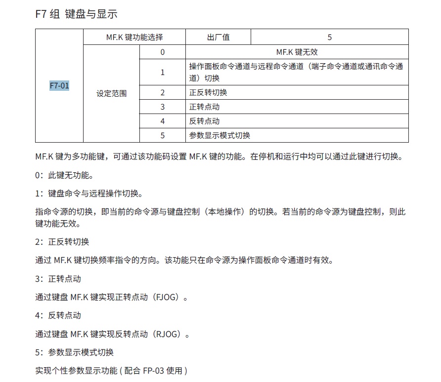 F0020(正反轉(zhuǎn)控制模式)→ ?設(shè)置為 2?(允許正反轉(zhuǎn)切換)3。