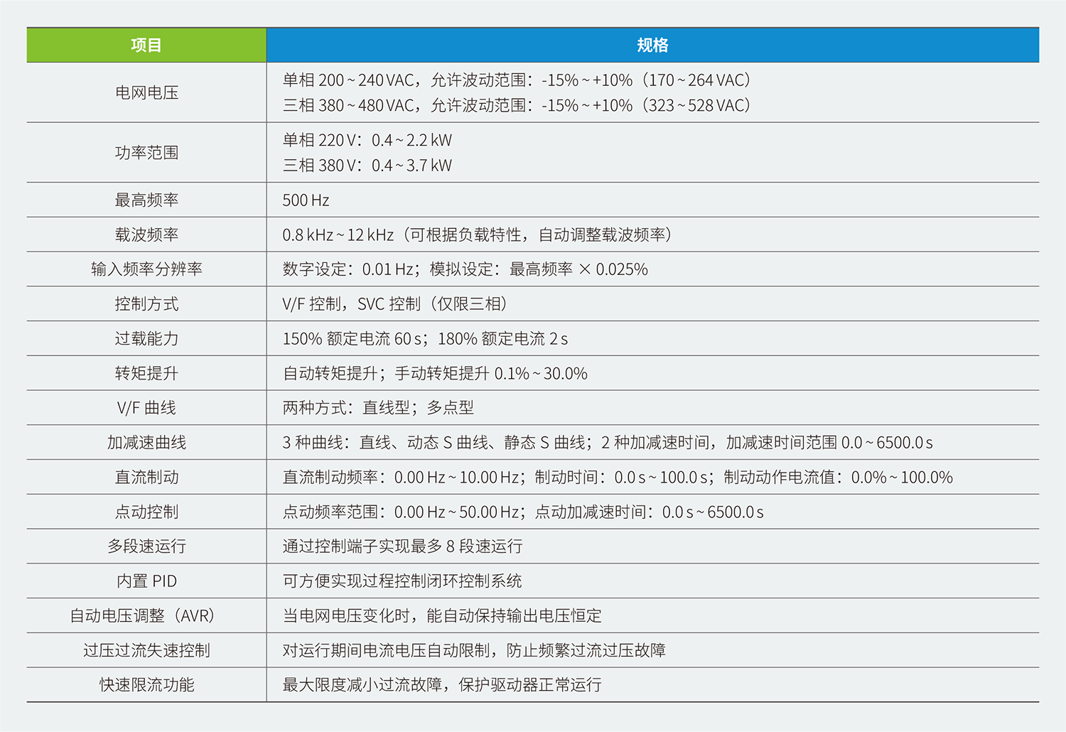 6、更大的額定電流設(shè)計,過載電流更大,加速時間更短