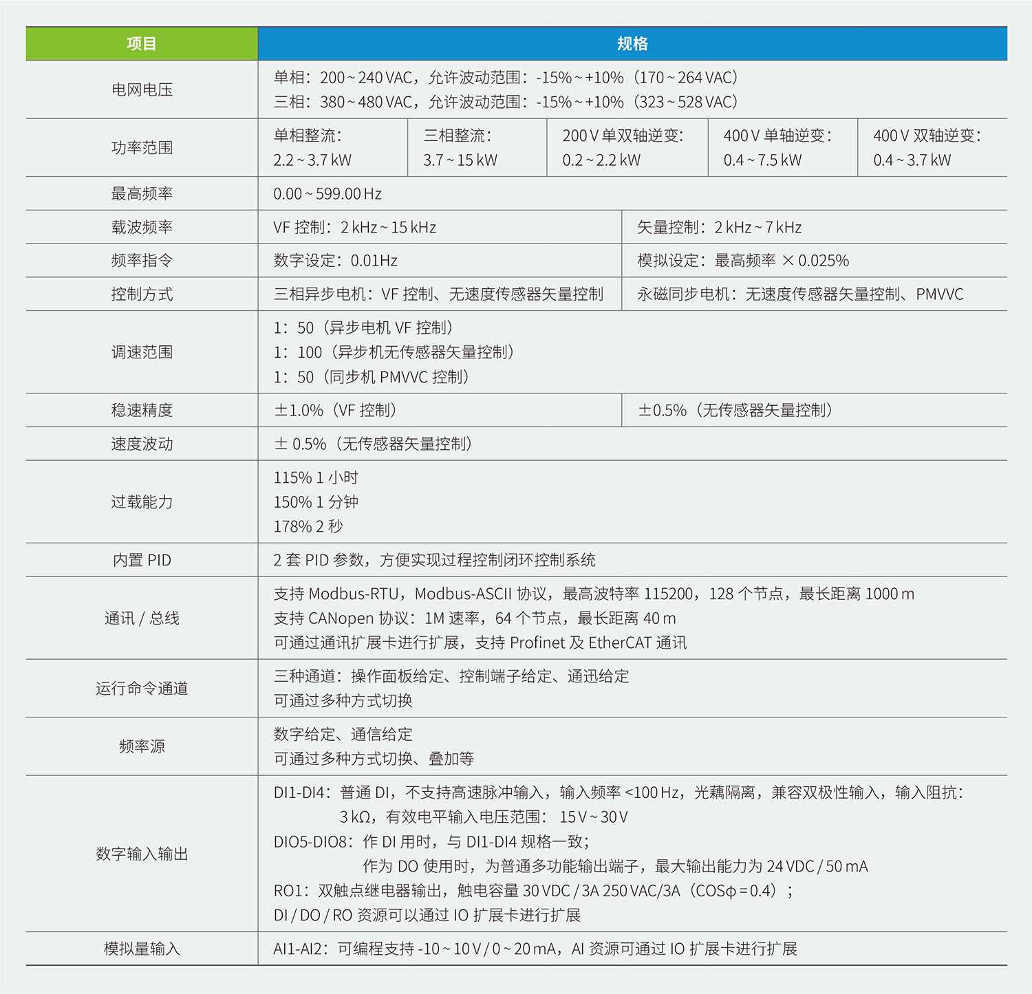 內(nèi)置CANopen、CANlink、Modbus-RTU通訊,支持PN、EtherCAT、EIP高速總線擴(kuò)展