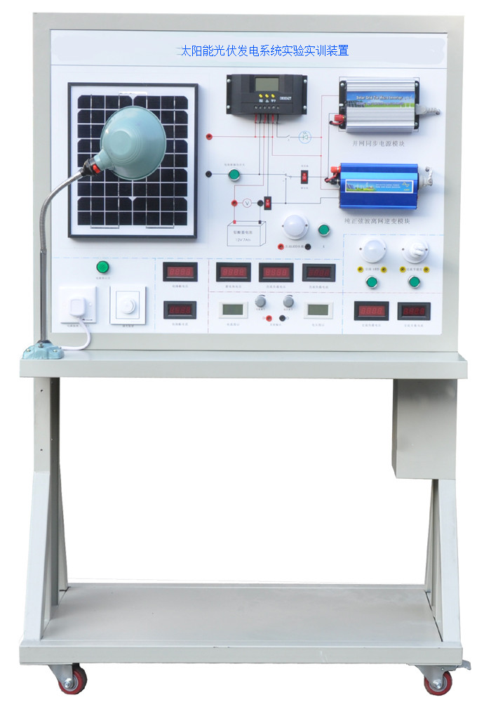 該實訓裝置所配控制器采用串聯式PWM充電控制方式,使充電回路的電壓損失較原二極管充電方式降低一半,充電效率較非PWM高3-6%;過放恢復的提升充電,正常的直充,浮充自動控制方式有利于提高蓄電池壽命。多種保護功能,包括蓄電池反接、蓄電池過、欠壓保護、太陽能電池組件短路保護,具有自動恢的輸出過流保護功能,輸出短路保護功能。